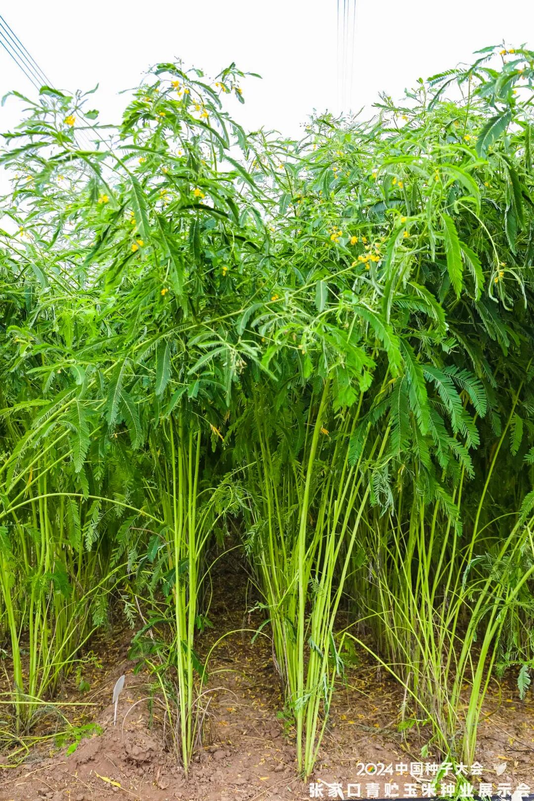 曹晓风表示,苜蓿的蛋白质含量高,被称为“牧草之王”。田菁叶子里的粗蛋白含量达30%以上,蛋白质含量可以和苜蓿比肩。但在重度盐碱地上,苜蓿是不能生长的,而且田菁再生能力强,可多次刈割,有作为优质粗饲料的潜力。“如果作为饲料,我们希望它的茎秆比例少,叶子比例多。”为选育出生产效益更高的品种,曹晓风自2021年起,便带领科研团队与中国热带农业科学院、山东省农业科学院合作,将来自海南、广东、云南、福建等省及巴基斯坦、刚果布等国家的400余份田菁种质资源,在海南三亚开始了试验性种植。同一年,曹晓风又将优选出的田菁种质带到黑龙江、吉林等地的盐碱地进行试种。多年育种研发,曹晓风团队成功选育耐盐碱、高产新品系“中科菁”系列。“中科菁1号”耐盐碱、耐涝性突出,配套曹晓风团队合作研发的包衣剂、固氮菌剂、除草剂等丰产栽培技术,在pH9以上的苏打盐碱地,可较好生长,具有晚熟、植株高大、分枝多、产草量高、蛋白含量高的特性,是新型高蛋白优质饲草的“潜力股”。吉林省洮南市一片田菁示范田中,8月的雨涝让田间地头积满了水,一些地方水深近1尺,即使穿着长筒靴水也会灌进来。“这两年,我们在这里试种过很多作物都没有收获,今年种田菁终于看到了希望。”该示范田所属企业浙江九亩智慧农业科技有限公司副总经理接受采访时介绍,“今年我们种了240亩田菁,一亩地总投资500元到600元,按一亩地2吨鲜草或0.4吨干草的产量计算,每亩地的收入能够从零收益增长到500元左右,效益非常不错!”在近日举办的2024中国种子大会张家口青贮玉米种业展示会的地展现场,“中科菁6号”实地测得平均株高约289cm,产量达5801.05kg/亩。经专家综合评价,“中科菁6号”获评“2024中国种子大会张家口青贮玉米种业展示会核心展示区推荐品种”。